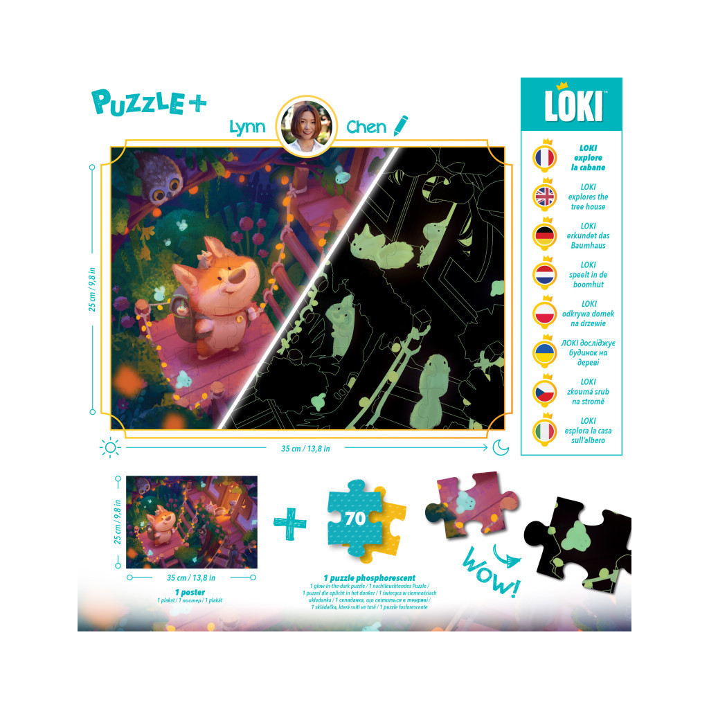 Découvrez sans plus attendre les Puzzles + ! Accessible à partir de 5 ans, ce puzzle est décliné en 70 pièces. Mais assurément, le facétieux LOKI ne nous propose pas de « simples » puzzles, ils brillent aussi dans le noir pour découvrir les surprises cachées.