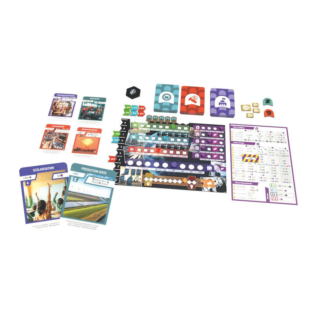 6 plateaux Nation6 Aides de jeu1 plateau Marché9 boîtes de rangement232 cartes57 cubes108 jetons Argent45 jetons Pollution33 jetons Destabilisation74 jetons Ressources fossiles124 jetons divers