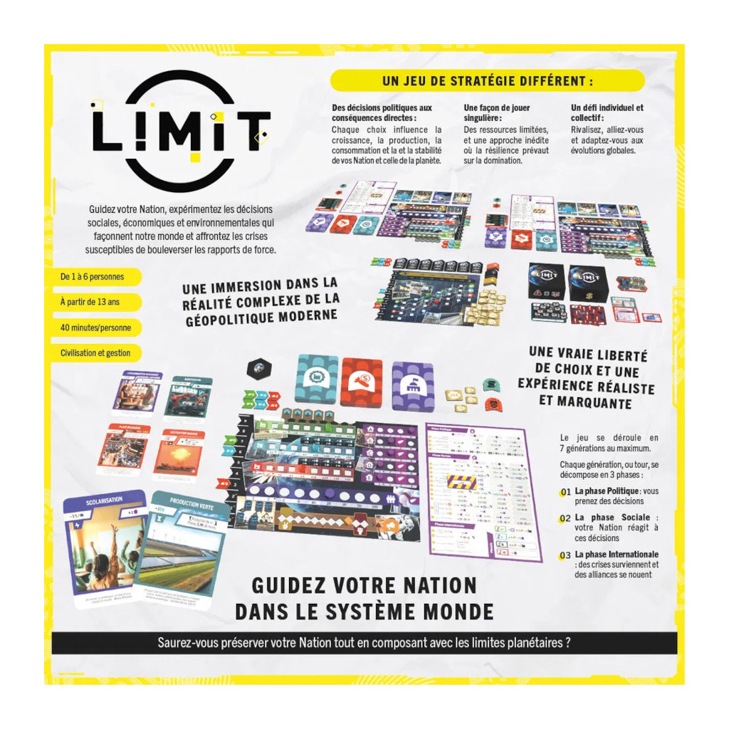 Limit est un jeu de civilisation et de gestion compétitif. Incarnez une Nation confrontée aux défis de l’histoire de notre monde. Prenez des décisions politiques cruciales, gérez le stock limité de ressources, anticipez les crises mondiales et adaptez-vous aux bouleversements de la planète ainsi qu’aux décisions des autres Nations.