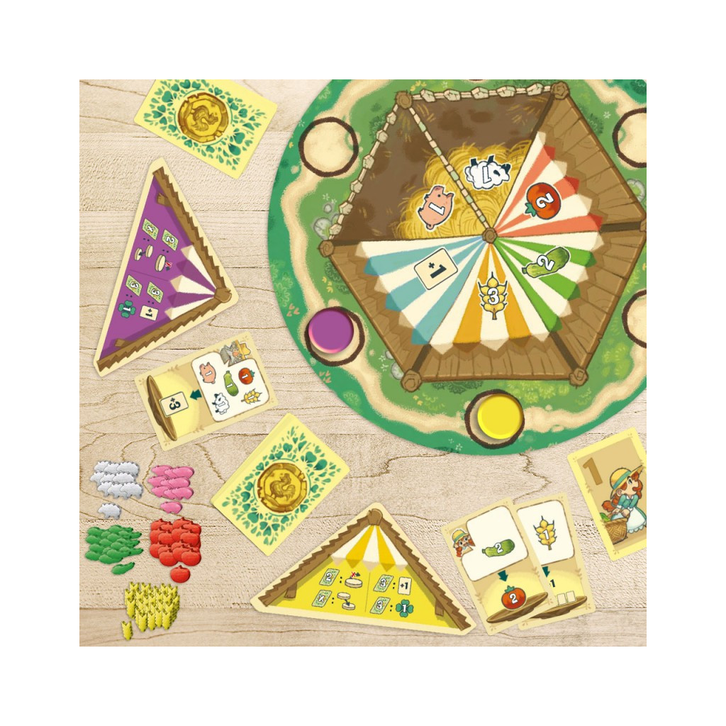 Chaque fermier aura un set de cartes commandes qu'il devra honorer en récupérant les bonnes ressources et en les troquant judicieusement. Créez vos moteurs temporaires de collecte de ressources et de pioche de cartes et coiffez les autres fermiers sur le poteau en finissant vos commandes avant eux !
