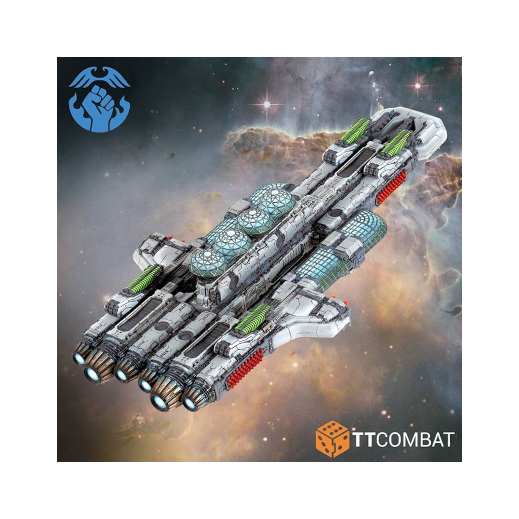 La boîte d'extension Resistance Dreadnought pour la seconde édition de Dropfleet Commander contient un vaisseau gigantesque à ajouter aux flottes de la Résistance.