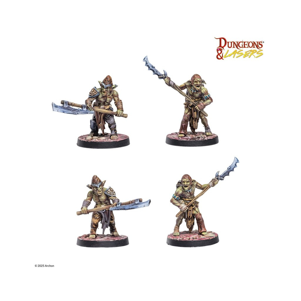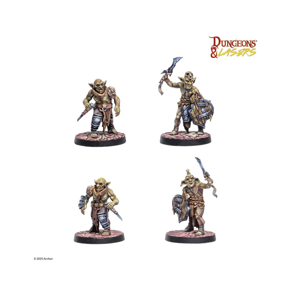 Dungeons & Lasers - Goblin Warband contient 16 figurines détaillées de guerriers gobelins avec différentes poses et options d'équipement. Idéal pour vos jdr !