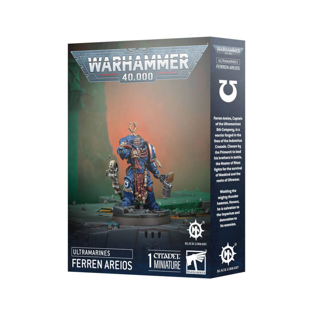 Ferren Areios, Capitaine de la 6e Compagnie des Ultramarines, est un guerrier forgé dans les flammes de la Croisade Indomitus. Choisi par son Primarque pour mener ses frères au combat, le Maître des Rites se bat pour la survie de l'Humanité et du royaume stellaire d'Ultramar. Brandissant Honneur, le puissant marteau Thunder, il représente le salut de l'Imperium et la damnation pour ses ennemis.Ce kit en plastique permet d'assembler Ferren Areios, un puissant héros pour vos armées de Space Marines dans les parties de Warhammer 40,000. Ferren est tout d'abord apparu dans la série de romans Dawn of Fire, et il est désormais le protagoniste de son propre roman Black Library: Maître des Rites. Il débarque enfin sur la table de jeu, revêtu d'une armure énergétique MkX Tacticus ouvragée et brandissant le marteau Thunder connu sous le nom d'Honneur. Ce véritable rouleau compresseur sur le champ de bataille représente également un formidable défi de peinture. Cette figurine dispose d'un choix de deux têtes: une tête nue et une tête casquée.Les règles de Ferren Areios pour Warhammer 40,000 sont disponibles en téléchargement gratuit sur le site Warhammer Community.Ce kit est composé de 18 éléments en plastique et de 1x socle scénique.
