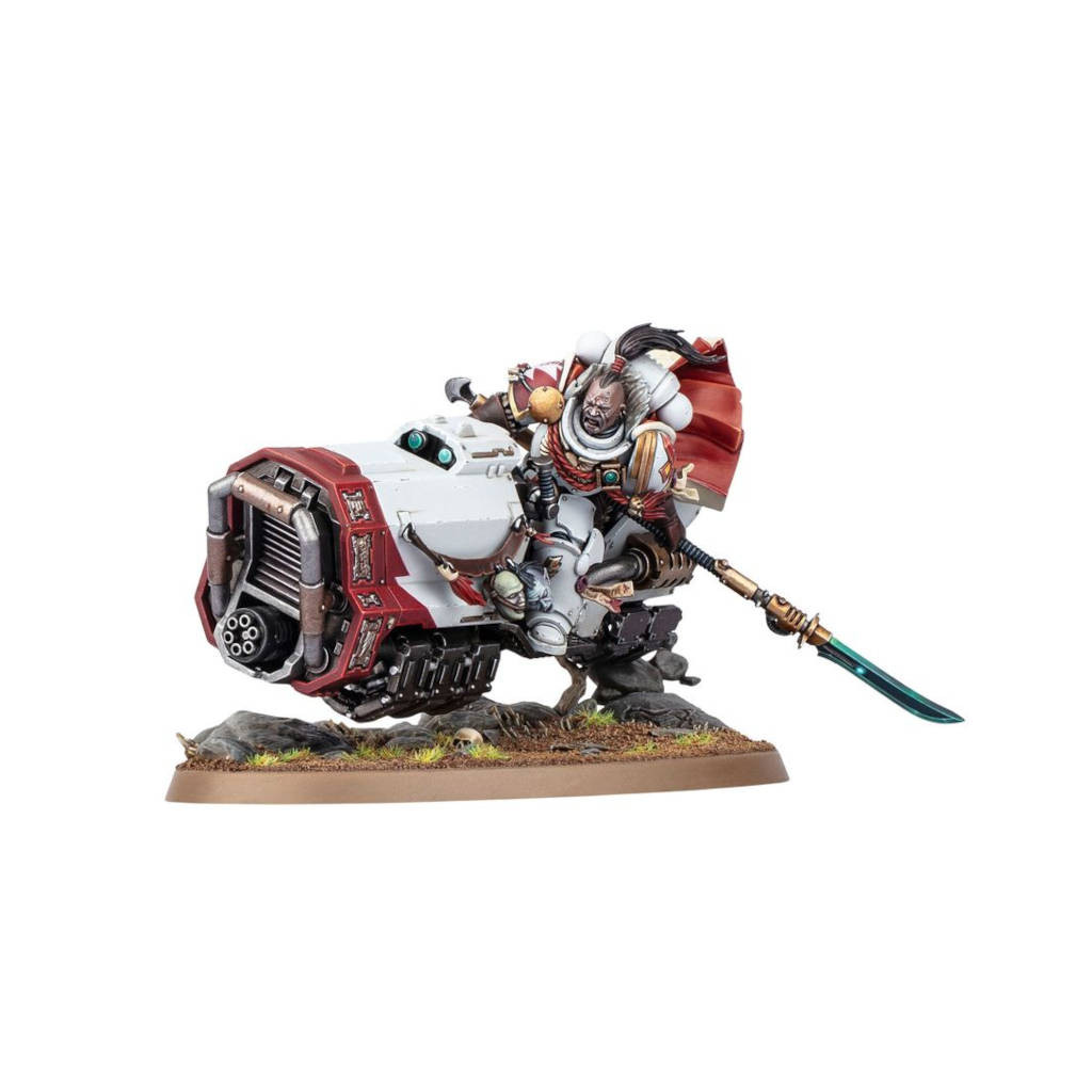 Suboden Khan est un authentique fils de Chogoris qui dirige la Première Confrérie des White Scars, monté sur Tonnerre, sa moto antigrav. Maître du combat en selle, il mène ses forces dans des chasses épiques et des poussées fulgurantes, en allant percuter les lignes ennemies et faucher implacablement les adversaires mis en fuite.Ce kit en plastique permet d'assembler Suboden Khan, un meneur agressif pour vos armées de Space Marines White Scars dans les parties de Warhammer 40,000. Aucune proie ne peut lui échapper lorsqu'il mène la traque perché sur sa moto antigrav personnelle avant de lui délivrer le coup fatal avec sa lance de chasse, Dent d'Orage. Cette figurine regorge de détails, incluant les têtes prises à de précédentes victimes, et une cape gonflée par le vent. Suboden peut être assemblé en choisissant entre deux têtes, nue ou casquée, ce qui offre à votre Khan un certain degré de personnalisation.Ce kit est composé de 44 éléments en plastique et de 1x Socle Ovale Citadel de 90mm x 52,5mm.