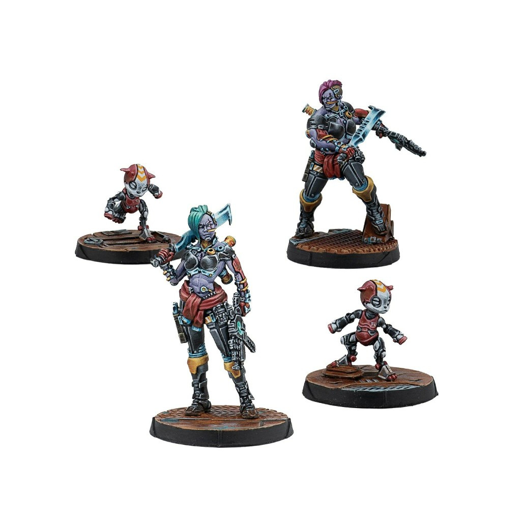 La boîte Switchers Garuppa contient 4 figurines pour renforcer la faction Nomads à Infinity.