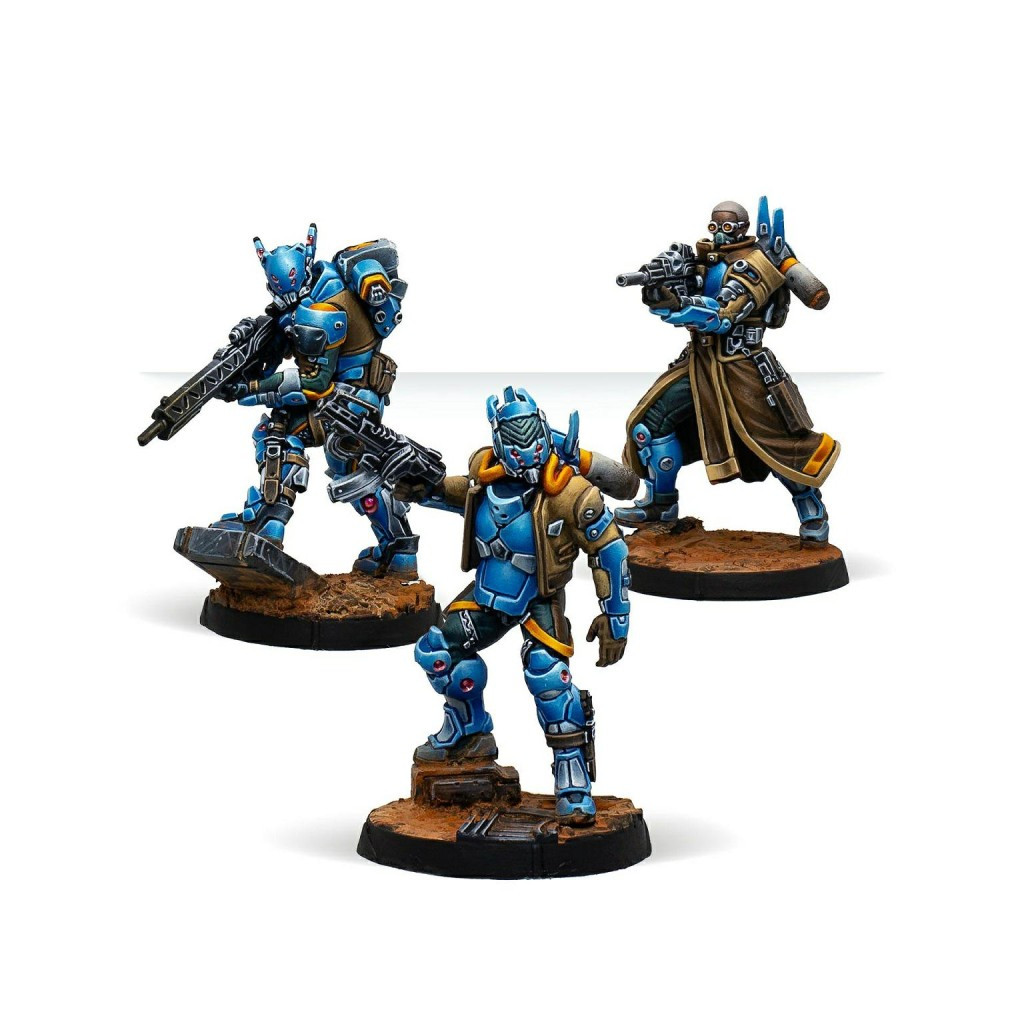 La boîte Kestrel Expansion Pack Gamma contient 3 figurine pour renforcer la faction PanOceania à Infinity.