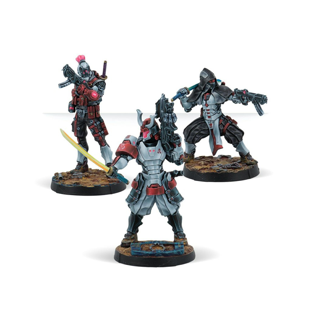 La boîte JSA - Shindenbutai Expansion Pack Gamma contient 3 figurines d'élite pour renforcer la faction JSA à Infinity.