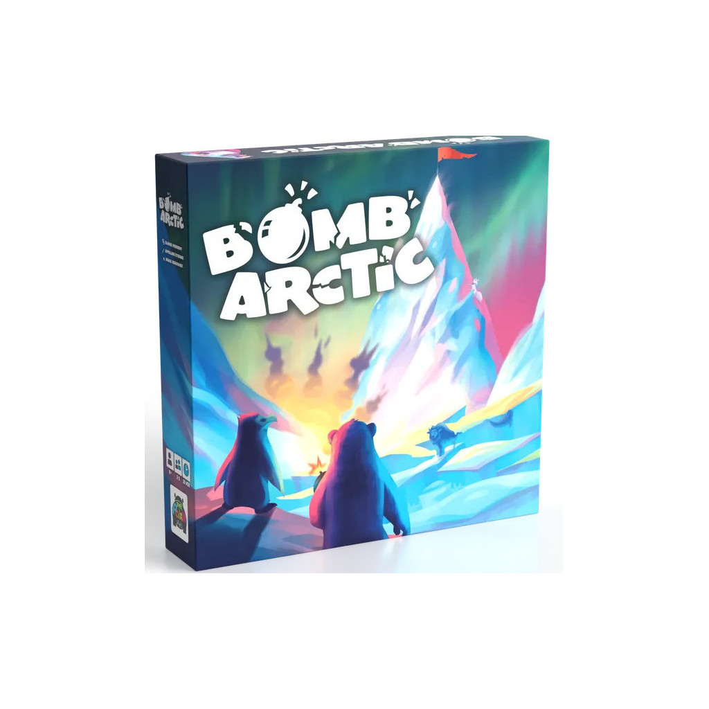 Dans Bombarctic, vous incarnez un champion bien décidé à atteindre le sommet d’un iceberg avant les autres. À chaque tour, vous choisissez secrètement une voie à suivre, pendant que vos adversaires essaient de deviner votre choix. Si vous parvenez à les tromper, vous avancez… et pouvez même tenter un nouveau pari pour prendre de l’avance dans la course. Mais attention : plus vous rejouez, plus le risque de perdre votre pari grandit. Observation, bluff et prise de risque sont au cœur de cette ascension polaire pleine de rebondissements. Prêt à tromper vos rivaux et atteindre le sommet en premier ?