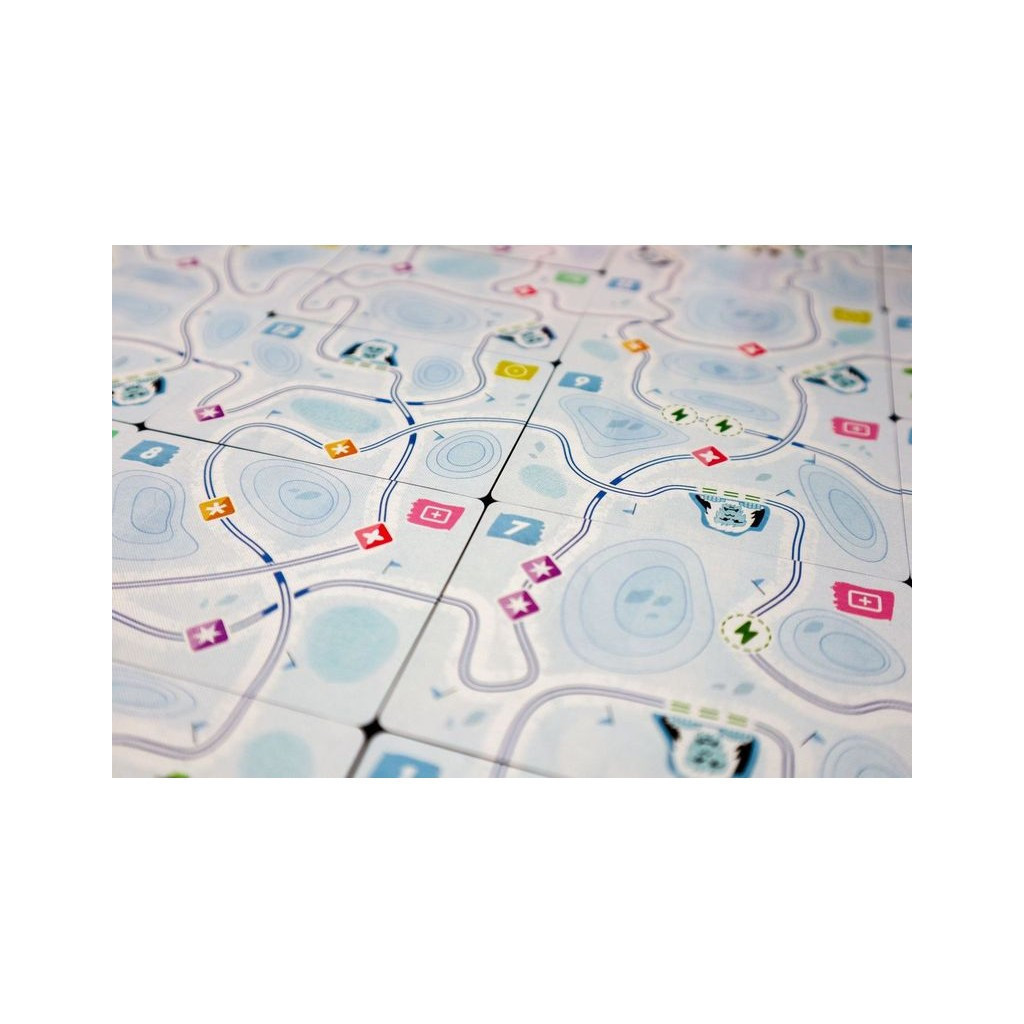À votre tour, choisissez un itinéraire sur la rangée de cartes communes et récupérez la carte au bout de cet itinéraire. Ajoutez cette carte à votre tableau personnel, créant ainsi un labyrinthe de pistes entrelacées. À la fin de la partie, choisissez l'une des pistes de votre tableau et gagnez des points en fonction de ses caractéristiques. Les formes et les barres énergétiques vous rapportent des points, tandis que le Yéti et les arbres sont à éviter. Le joueur avec le plus de points gagne !