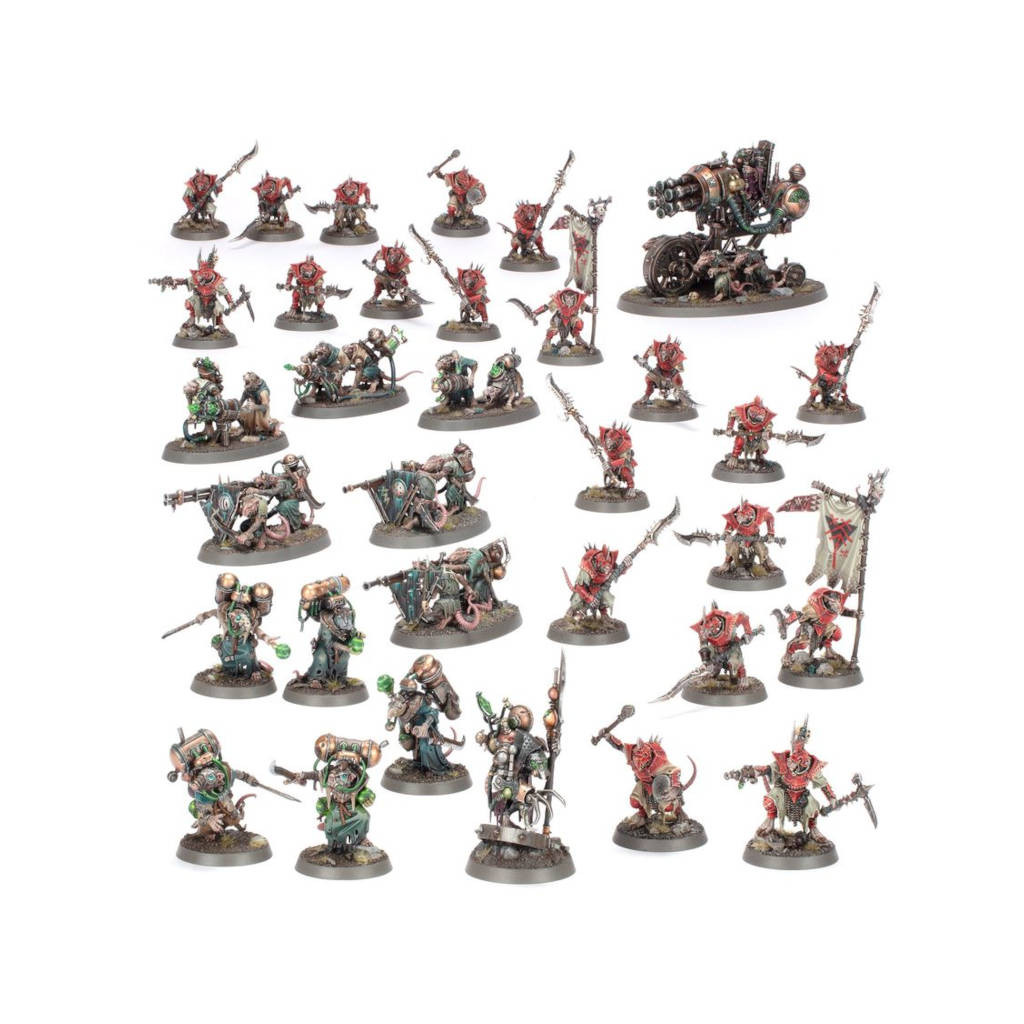 – 1x Archi-technomage– 1x Maléclateur Ratling– 3x Jezzails à Malepierre– 3x équipes de Batterie d'Armes Malétincelles– 5x Acolytes Globadiers– 20x Vermines de Choc