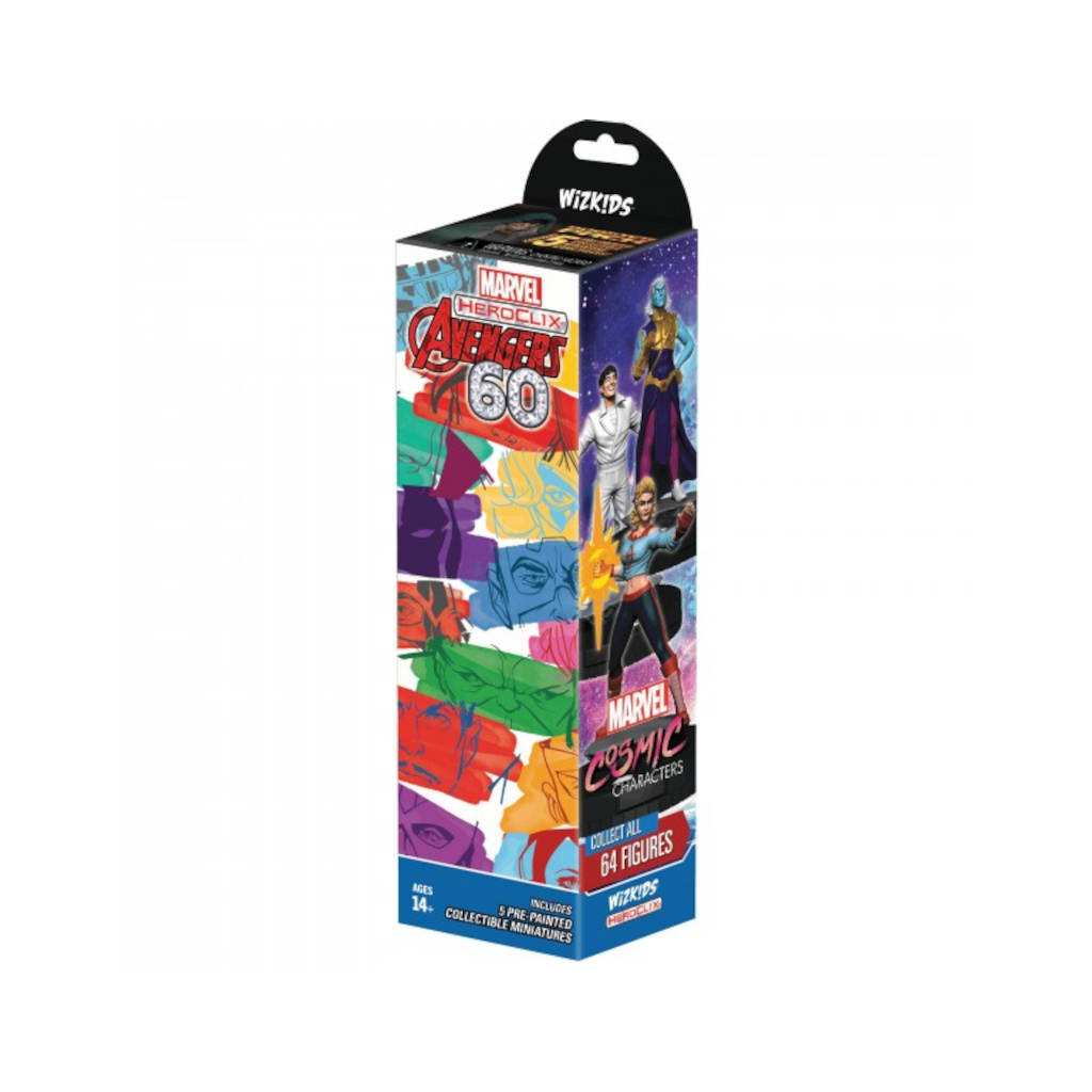 Booster en Anglais. Chaque Booster contient 5 figurines aléatoires de l'édition Heroclix - Avengers 60th Anniversary et leurs cartes de héros.