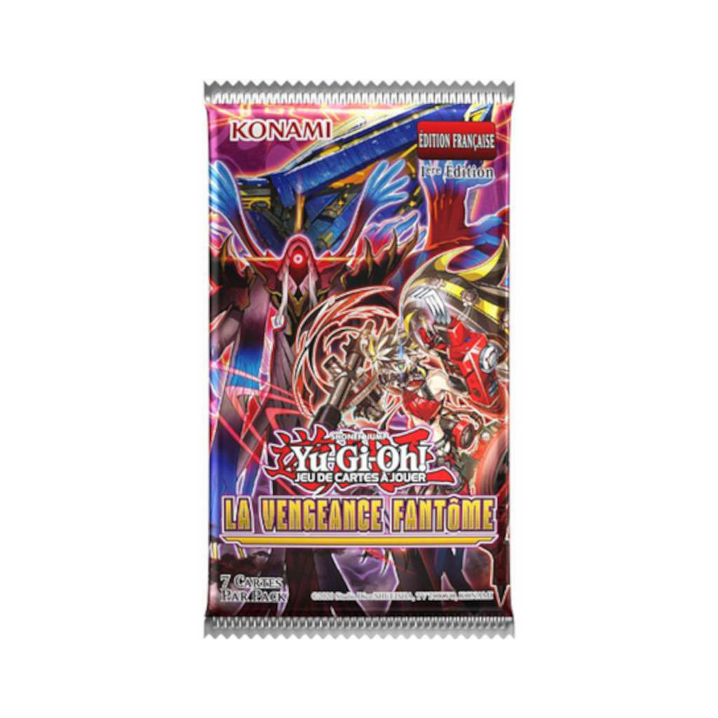 Booster Yu-Gi-Oh! à l'unité de l'édition La Vengeance Fantôme. Chaque Booster contient 7 cartes aléatoires.