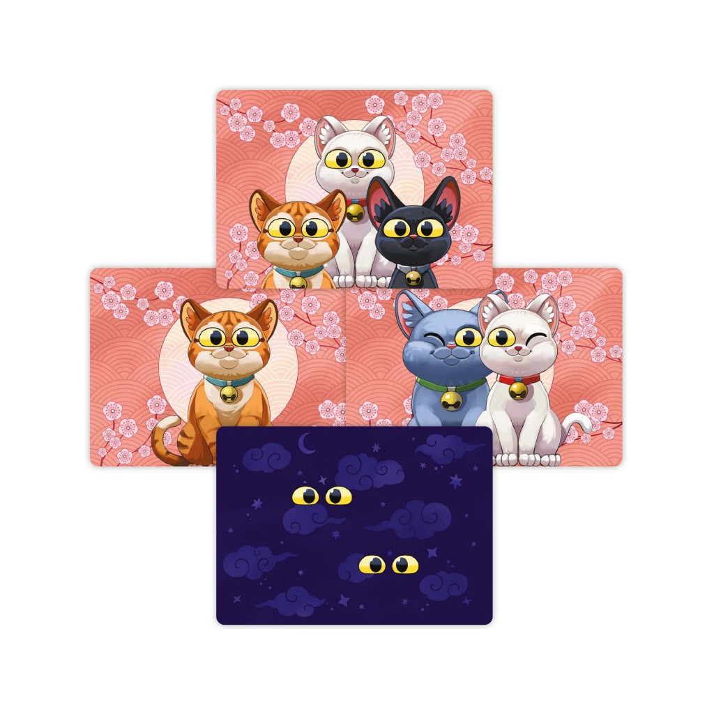 Dans Kyoto No Koneko : Chatons Cache-Cache, les joueurs vont faire face à un carré de 4x4 cartes dont ils ne voient que des paires d'yeux sensées leur indiquer le nombre de félins qu'ils découvriront s'ils décident de les retourner.