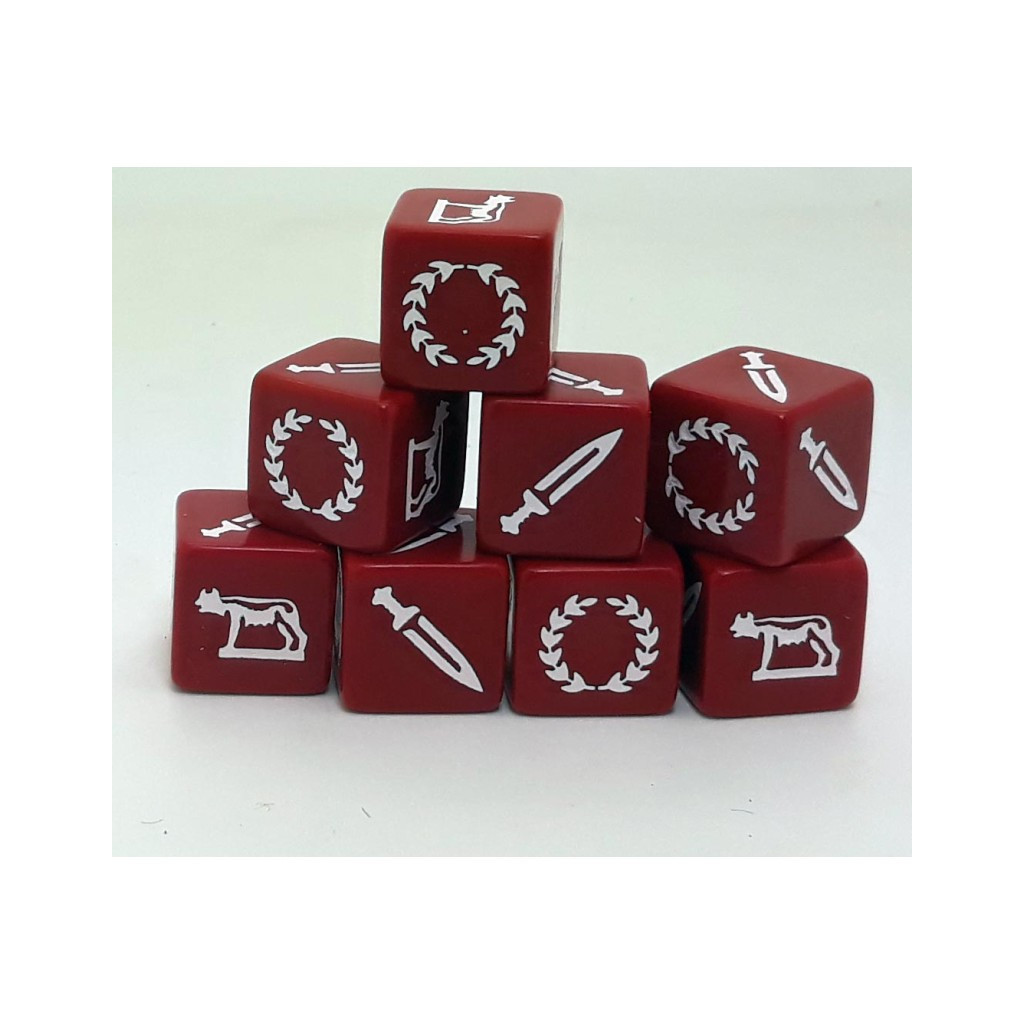 Ce Set de dés contient 8 dés spécialement conçu pour Saga, à utiliser avec le supplément de l'Âge d'Hannibal et les armées romaines.