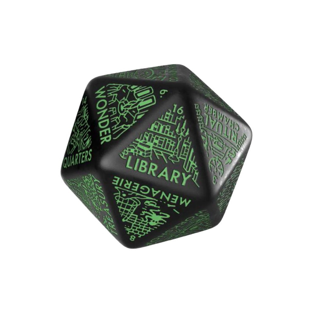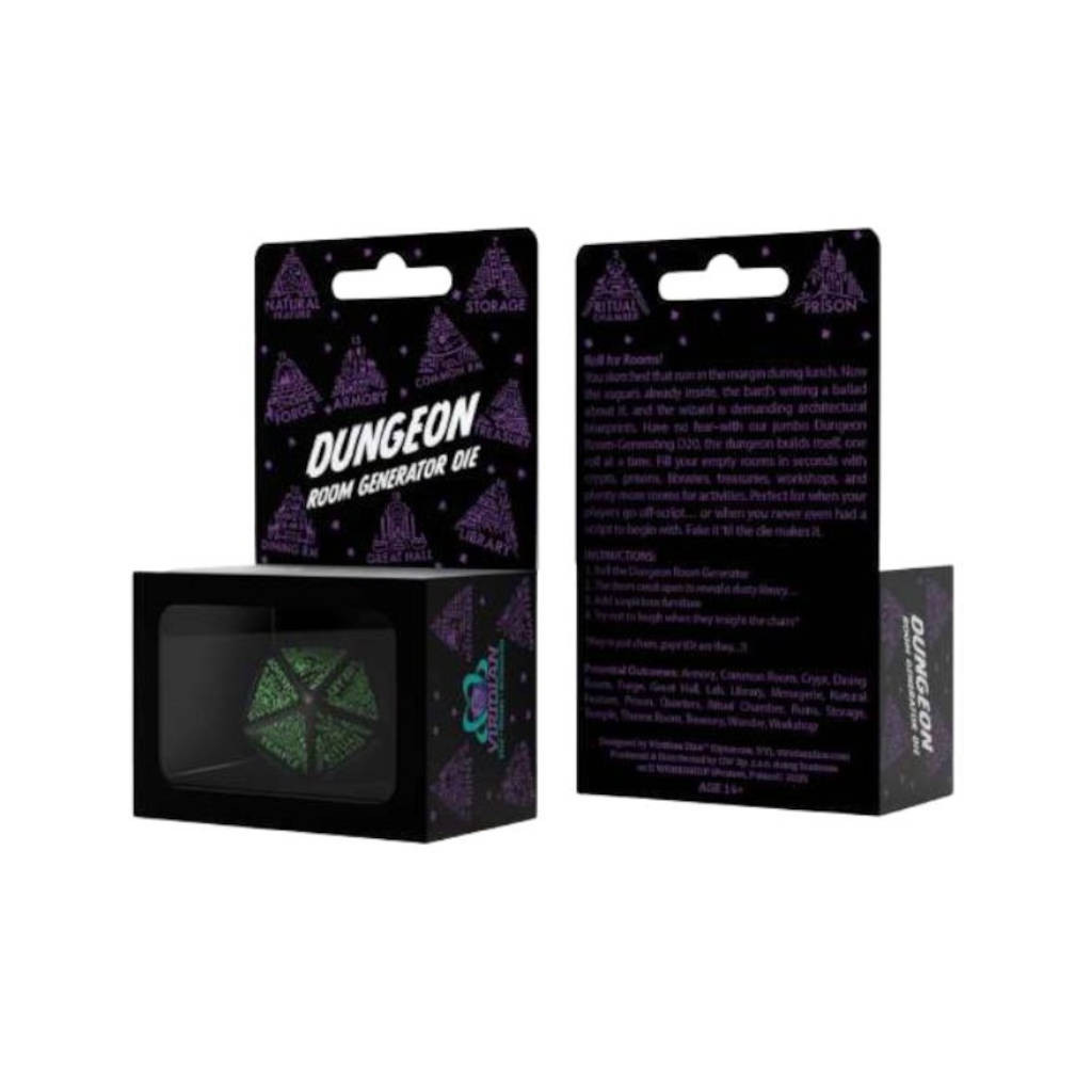 Vous voulez imaginer un enchainement de pièces de donjons sans peine ? Laissez faire le hasard avec ce dé géant générateur de donjons noir & vert !