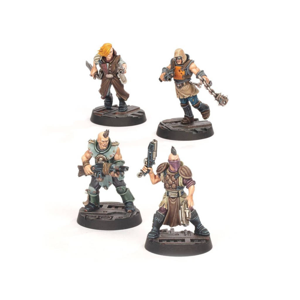 Cette boîte vous permet d'assembler 4 figurines plastique à ajouter à votre gang d'Outcasts ou de Maison, avec un large éventail d'options de personnalisation, dont 10 armes et 8 têtes différentes.