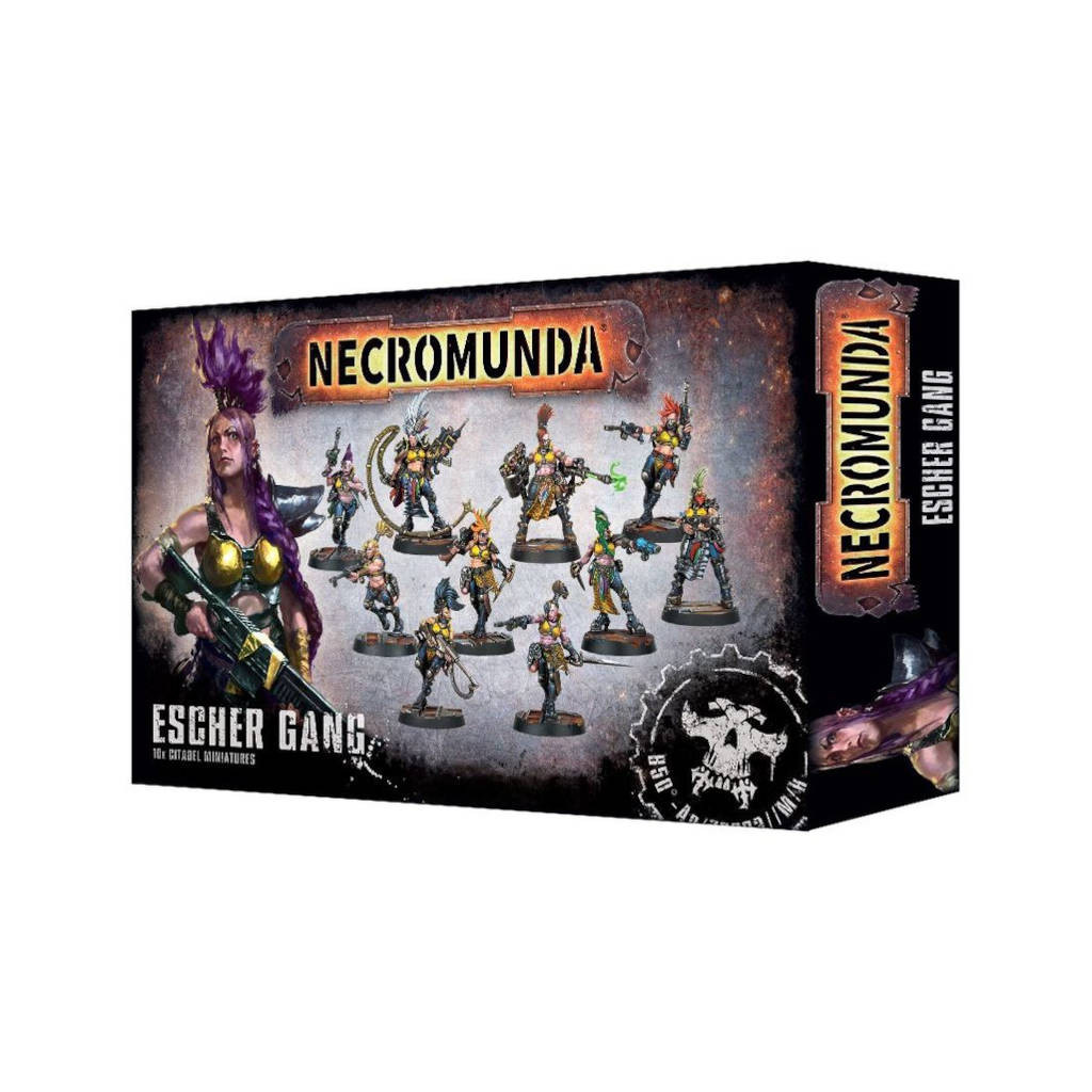 La maison Escher est unique parmi les grandes maisons de Necromunda, en ceci que ses gangs sont exclusivement féminins. Expertes en pharmacologie et chimie appliquées, les Escher peuvent manquer de force physique, mais elles compensent largement cela par leur vitesse, leur habileté et leur chic psychotique.