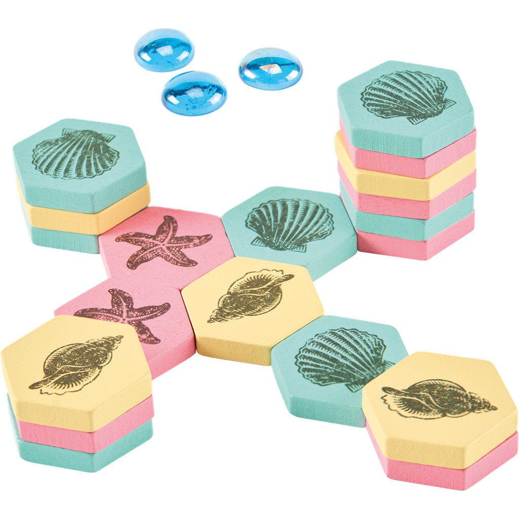 Au gré des marées, les coquillages et crustacés s'amoncellent sur la plage. Dans ce jeu de stratégie abstrait pour 2 joueurs inspiré par le bord de mer (High Tide signifie Marée Haute), vous devrez empilez vos tuiles hexagonales sur celles de votre adversaires. Tentez tour après tour de les recouvrir pour maximiser votre visibilité en fin de partie. Cette mécanique accessible dissimule une vraie tension stratégique. La partie s'achève lorsque l'un de vous ne peut plus déplacer de tuiles lors de son tour. En cas d'égalité, c'est la hauteur de vos piles qui détermine le gagnant de la manche. Le jeu se joue en 3 manches gagnantes.L'anticipation sera la clé de ce duel rapide et subtil. Vous serez immanquablement séduits par la qualité du matériel reflétant la beauté de l'univers marin avec des dessins épurés et des couleurs pastel. Les éléments ont aussi été réfléchis dans un souci d'écologie et de praticité : tuiles en bois, pierres en verre, un sac tissu pour ranger les éléments et une boîte à clapet aimanté compacte pour tout emporter.Vous pouvez le glisser facilement dans votre sac pour des duels sur une terrasse, dans le train ou même sur la plage ! En couple, en famille (dès 8 ans) ou amis, c'est le jeu idéal si vous aimez les jeux abstraits élégants, avec une dimension tactique prononcée.Contenu :