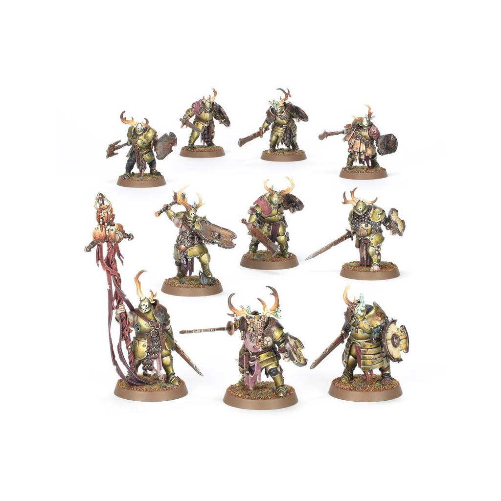 Les Putrépées sont des fantassins de Nurgle enfiévrés dont la puanteur âcre provoque la nausée même chez les ennemis les plus robustes. Fébriles et empressés, ils manient leurs armes abîmées, mais mortelles, avec une vigueur et un déchaînement terrifiants.Ce kit en plastique permet d'assembler 10 Putrépées, des fantassins mortels et lourdement protégés pour vos armées de Putrescents de Nurgle dans les parties de Warhammer Age of Sigmar. Engoncés sous de lourdes plaques de métal rouillé, ils sont très difficiles à abattre et sont ainsi particulièrement efficaces pour tenir les objectifs. Chaque Putrépée peut être équipé d'une paire d'armes de corps à corps mortelles et souillées, ou d'une arme et d'un bouclier. Les armes de main droite et les boucliers de main gauche sont interchangeables entre les figurines, tout comme les 12 têtes que contient le kit, ce qui permet de personnaliser facilement votre unité. Vous y trouverez également les éléments nécessaires pour assembler un champion, un musicien et un porte-étendard optionnels, avec un choix de deux sommets de bannière.Ce kit est composé de 135 éléments en plastique et de 10x Socles Ronds Citadel de 32mm.
