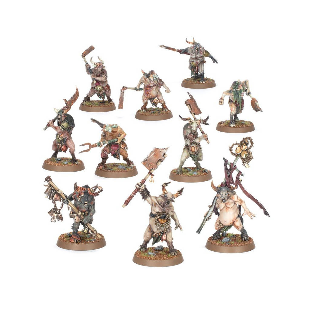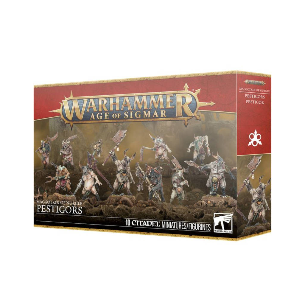 Les Pestigors nourrissent une haine bestiale de la civilisation, et leur seul désir est de la réduire à néant. Ils répandent les immondices et les maladies où qu'ils aillent, en semant la corruption jusqu’à en saturer le sol, puis cherchent un nouvel endroit à contaminer.Ce kit en plastique permet d'assembler 10 Pestigors, des hommes-bêtes contaminés pour vos armées de Putrescents de Nurgle dans les parties de Warhammer Age of Sigmar. Ces créatures putrides et bouffies sont prêtes à marcher en avant-garde de votre armée, insensibles à leurs blessures et avides d'engager l'ennemi au corps à corps pour répandre la ruine à l'aide de leurs armes rouillées. Le kit contient les éléments nécessaires pour assembler un champion, un musicien et un porte-étendard optionnels, ce qui vous permet de personnaliser votre unité.Ce kit est composé de 54 éléments en plastique et de 10x Socles Ronds Citadel de 32mm.