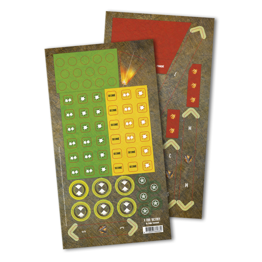 Ces deux planches de pions cartonnés contiennent tous les pions nécessaires pour V for Victory. Pions en carton épais, prédécoupés.