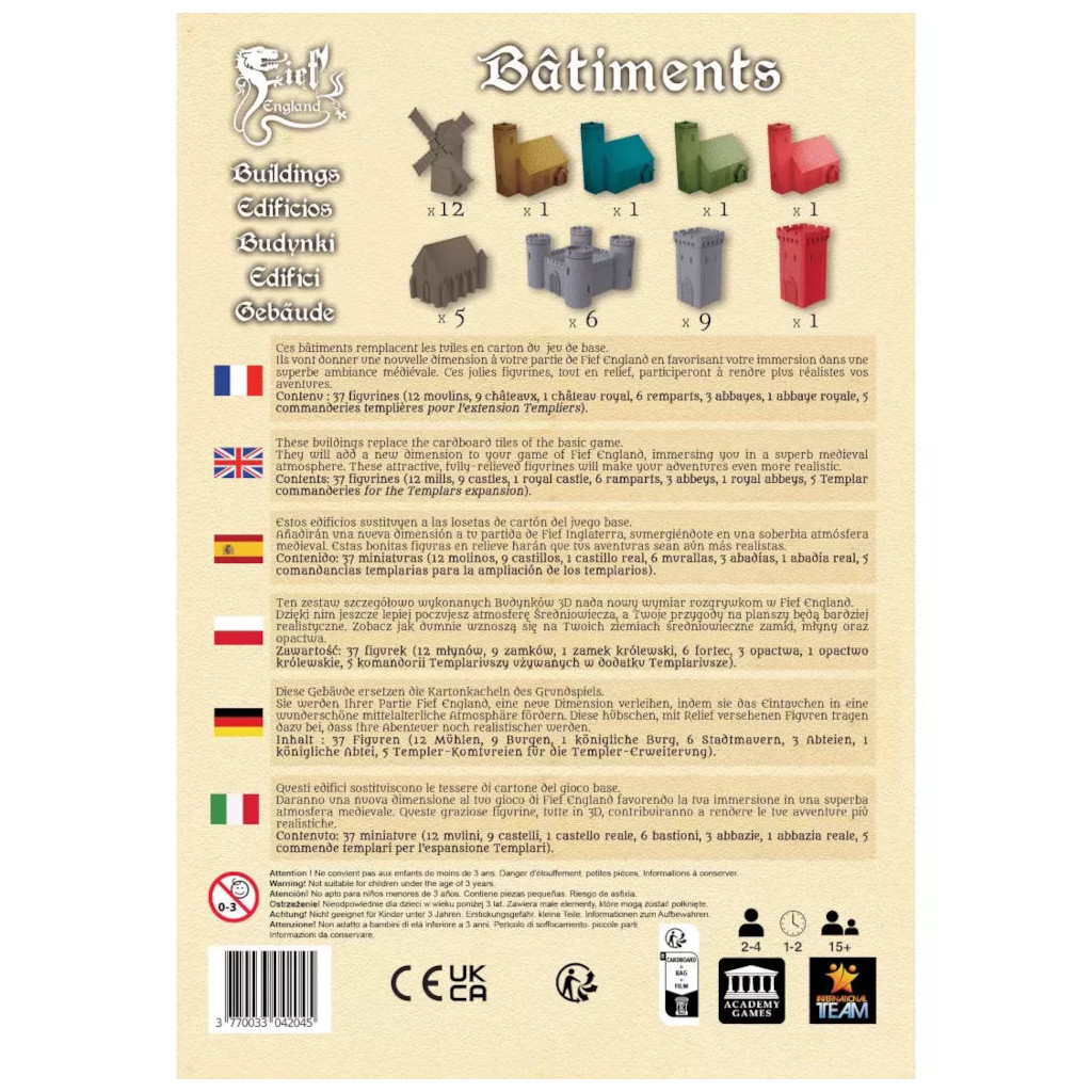 37 bâtiments pour remplacer les tuiles en carton du jeu de base Fief England.