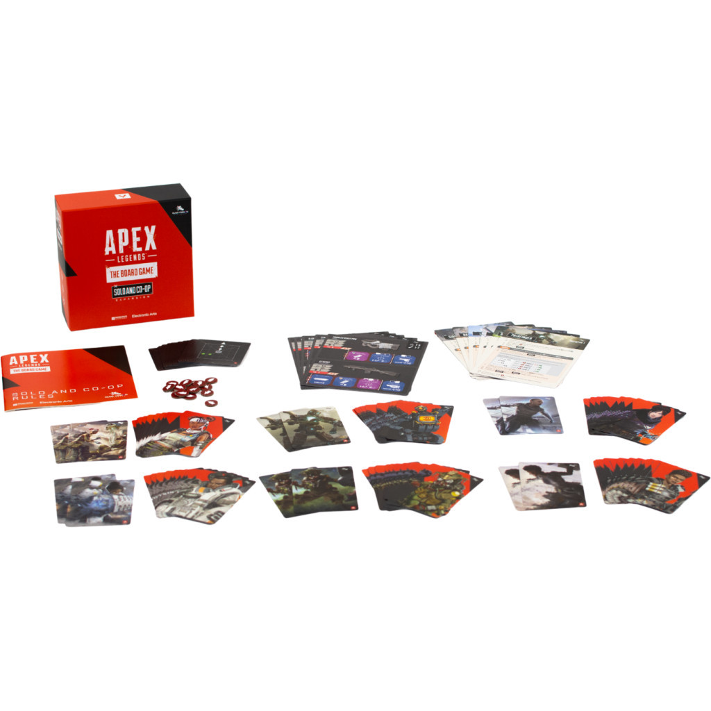 L’extension Solo et Coop permet de jouer à Apex Legends: Le Jeu de Plateau en mode solo ou en coopération avec un autre joueur contre une escouade d’adversaires automatisés.