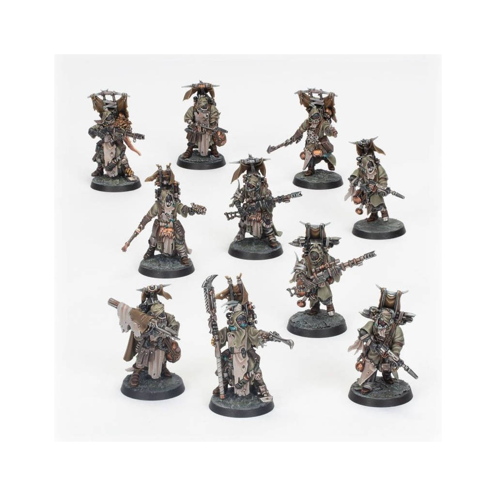 – 10x corps de cinq types différents, chacun vêtu de guenilles pesantes et couverts de gourdes, conteneurs, et d'outils, pouvant être assemblés comme vous le souhaitez– 12x têtes de six types différents– 10x écrans dorsaux en lambeaux– Plein d'armes! 4 long fusils, 4 fusils éclateurs, 2 pistolets éclateurs, 2 couteaux de rôdeur, 2 lanceurs de charge, 2 mono-crochets, et 2 lances tronçonneuses