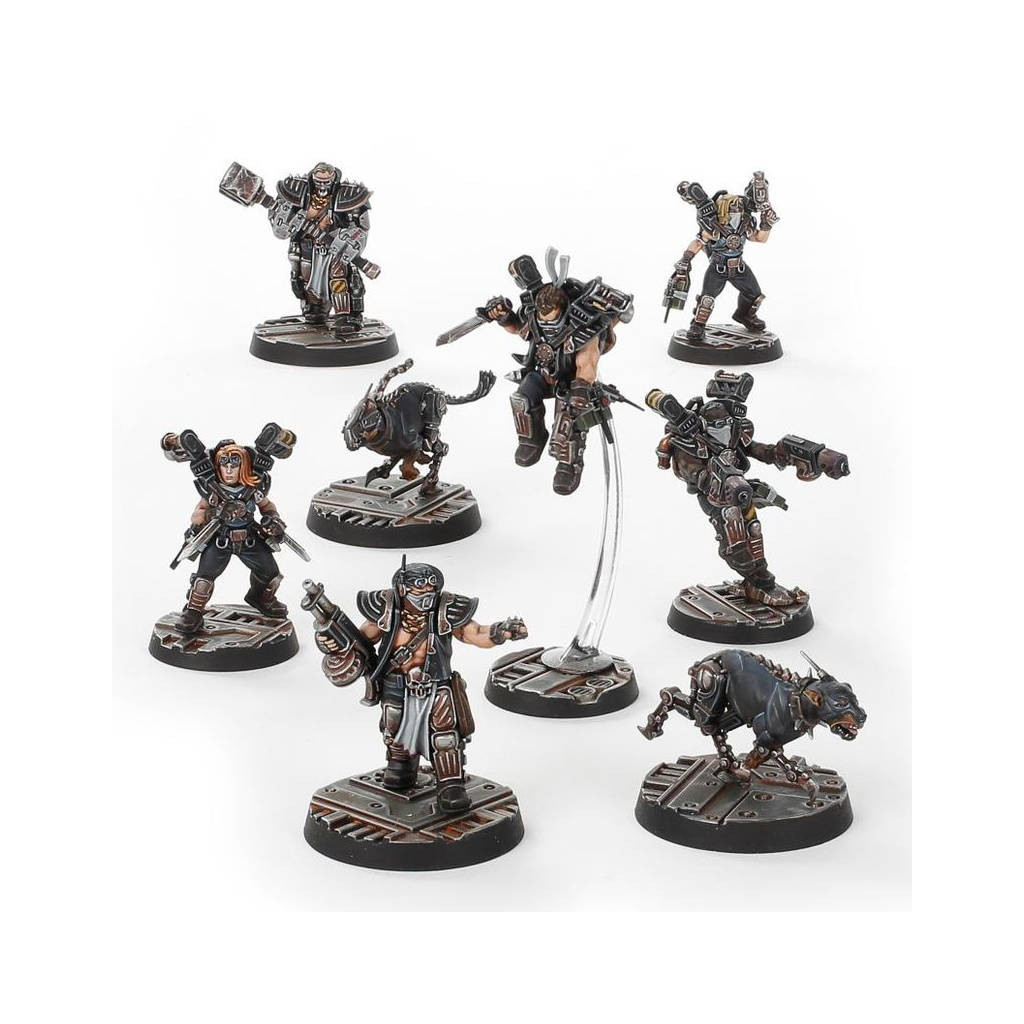 Ce kit plastique en 120 composants permet d'assembler deux Arms Masters, deux Cyber-mastiffs, et quatre Wreckers. Il est fourni avec quatre socles ronds de 25mm pour Necromunda, quatre socles ronds de 32mm pour Necromunda, et une grappe de tiges rainurées de 45mm.