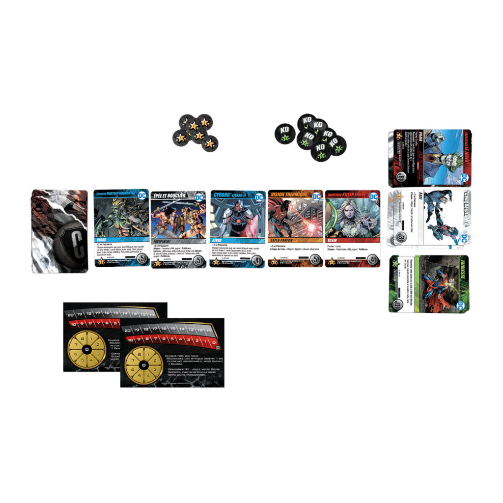 Les modes Avancé et Impossible enrichissent l'expérience avec des cartes Arène offrant des effets bonus stratégiques et de redoutables cartes Clash aux conséquences imprévisibles. Grâce à ses 207 cartes, son matériel de qualité et sa compatibilité avec les autres jeux de la gamme DC, Injustice garantit une forte rejouabilité et des affrontements tendus jusqu’au dernier point de vie.