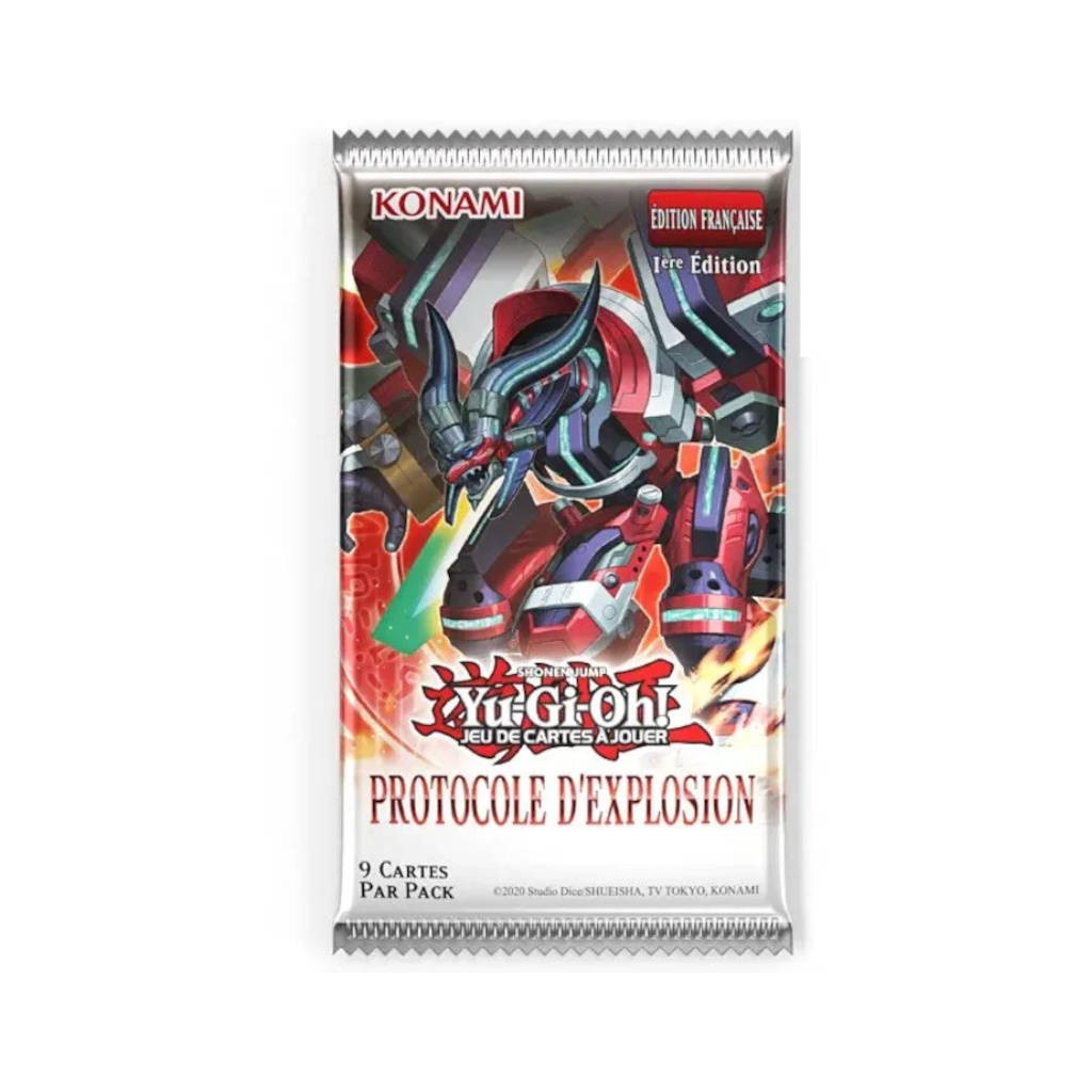 Booster Yu-Gi-Oh! à l'unité de l'édition Protocole d'Explosion. Chaque Booster contient 9 cartes aléatoires.