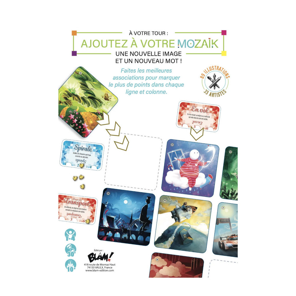Mozaik. Piochez des images et des mots puis composez judicieusement votre grille en trouvant les liens qui les unissent.