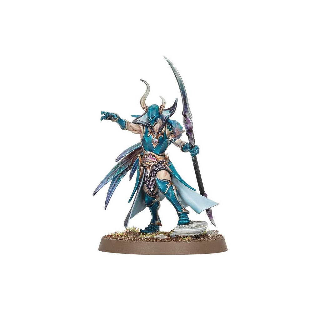 Les Destinarques sont les génies militaires des cultes arcanites, des agitateurs charismatiques qui manient le complot et l'illusion pour garantir la destruction de leurs ennemis. Leurs glaives maudits taillent à travers la chair et le métal avec une facilité surnaturelle, tandis que leurs loyaux familiers, les Vire-d'ailes, leur fournissent une vision globale du champ de bataille.Ce kit en plastique permet d'assembler un Destinarque, un puissant sorcier pour vos armées de Disciples de Tzeentch dans les parties de Warhammer Age of Sigmar. Armé d'un vouge anathème à l'aspect cruel et protégé par une lourde armure de plates, il est prêt à mener la charge de votre horde Arcanite. Ses robes, son armure angulaire et son Vire-d'aile offrent également aux peintres une gamme de textures permettant de faire la preuve de leurs talents.Ce kit est composé de 8 éléments en plastique et de 1x Socle Rond Citadel de 40mm.
