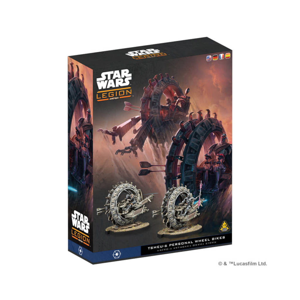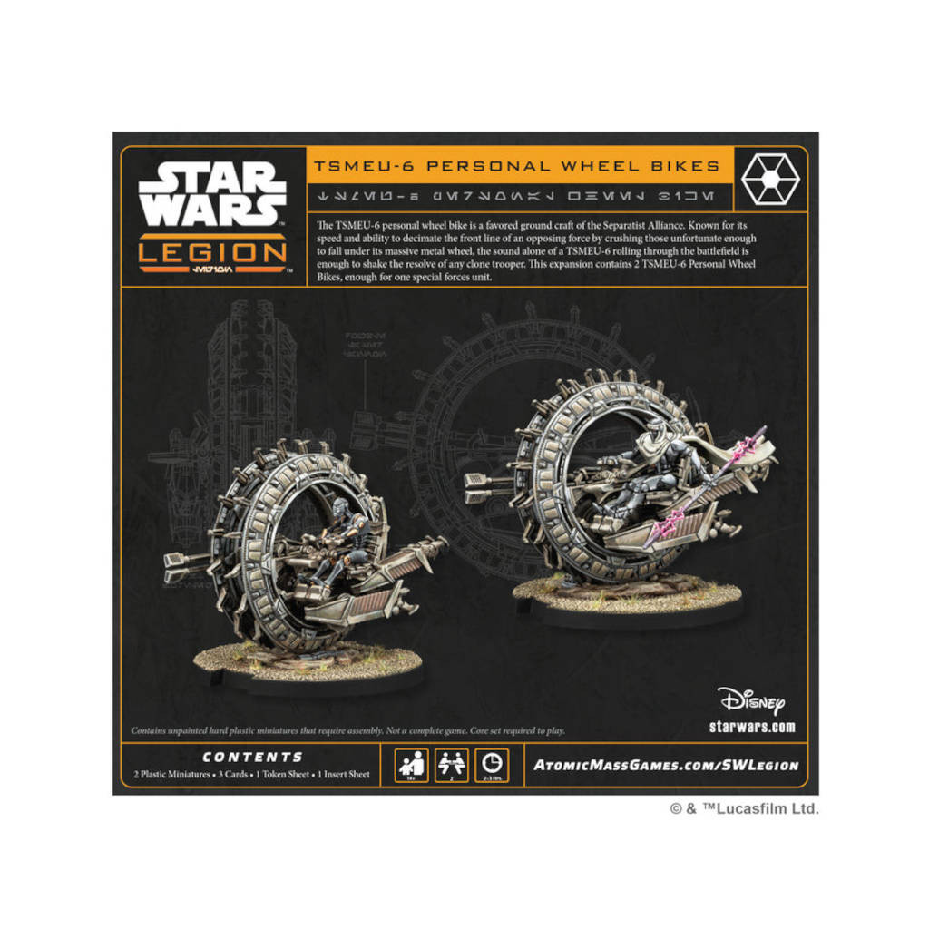 Cette extension pour les armées séparatistes dans Star Wars: Légion contient deux figurines de Tsmeu-6 Personal Wheel Bikes, capables de décimer les armées adverses.