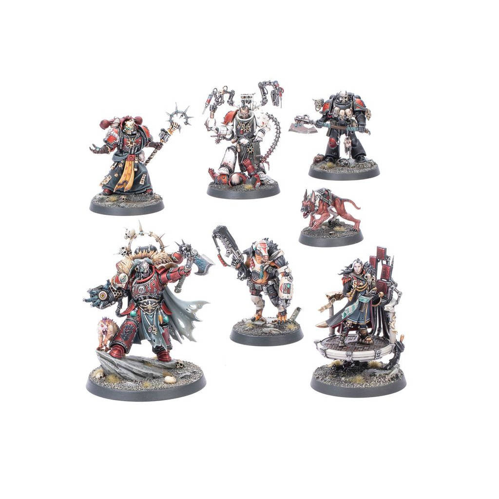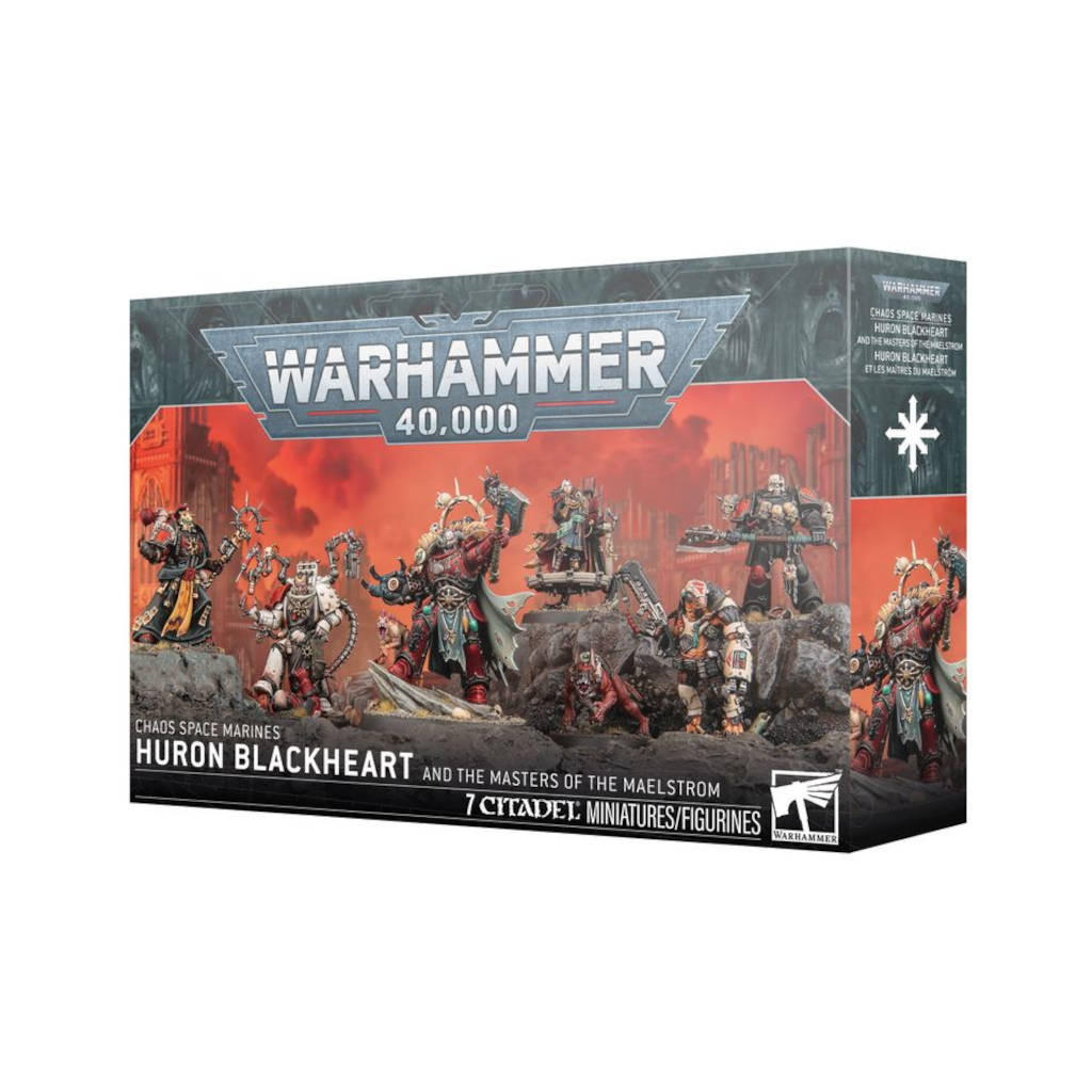 Ce kit en plastique pour Warhammer 40K contient Huron Blackheart lui-même et les cruels partisans qui constituent son cercle intérieur, pour les armées de Space Marines du Chaos.