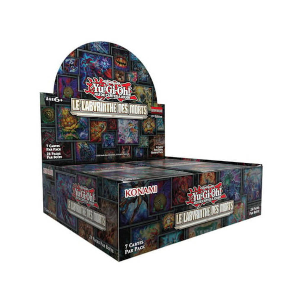 Display de 24 boosters. Chaque booster Le Labythinthe des Morts contient 7 cartes : 1 carte brillante par pack 6 cartes Rares par pack