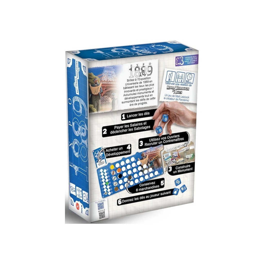 Dans Expo 1889, devenez l’architecte de l’Exposition universelle de 1889 ! Réédition du jeu Roll Through The Ages !