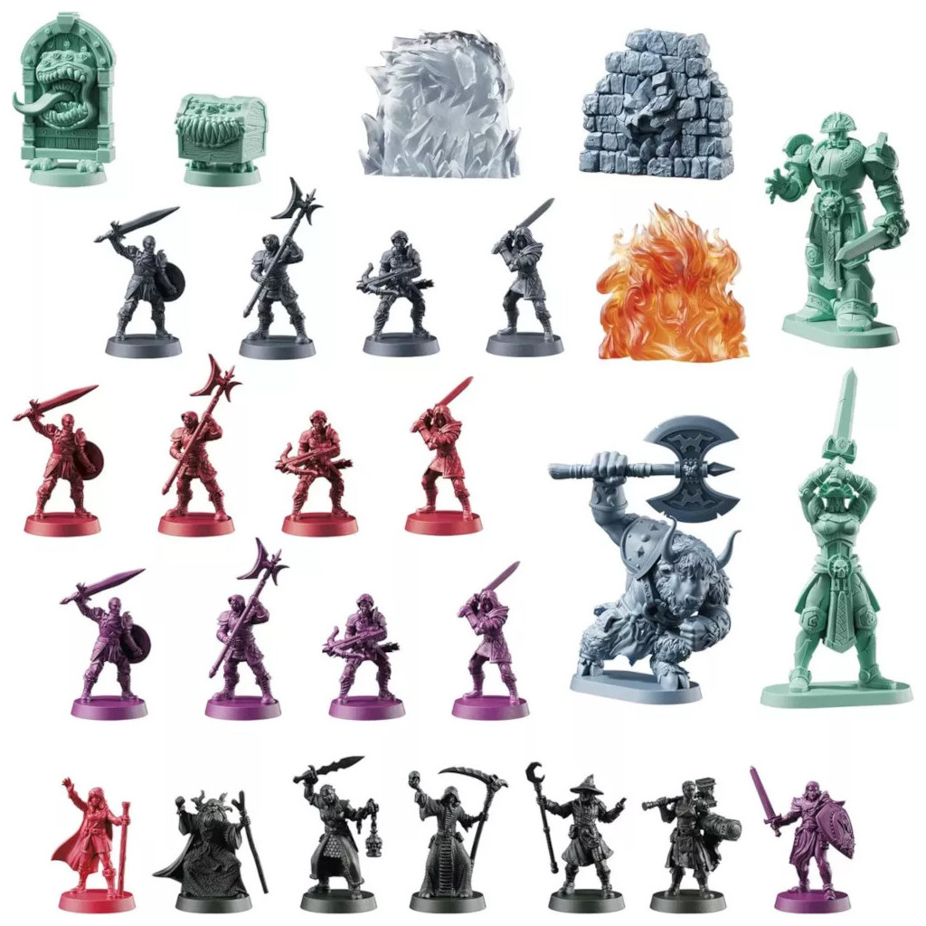 10 quêtes, 27 figurines détaillées, 64 cartes de jeu, une planche de tuiles cartonnée.