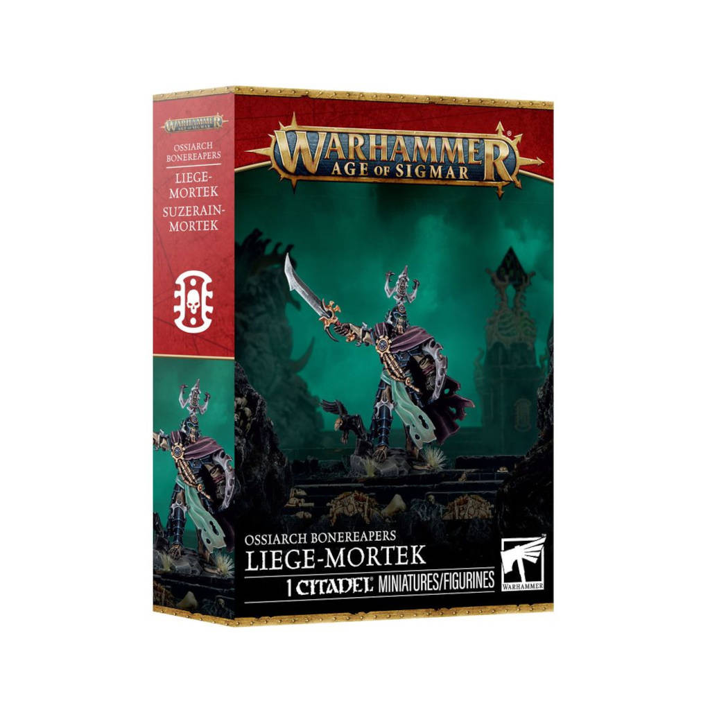 Ce kit plastique vous permet de monter un Liege-Mortek, un leader générique pour les Ossiarch Bonereapers à Warhammer : Age of Sigmar.