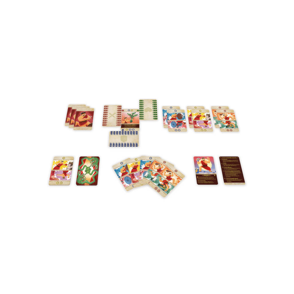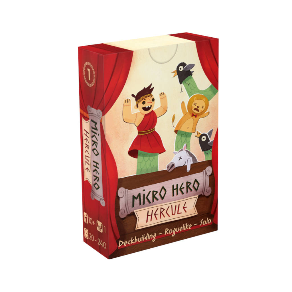 Dans un format de poche de 55 cartes, incarnez un Hercule revisité avec humour, affrontant les 12 Travaux sous forme d’Épreuves uniques. Chaque partie se déroule en 12 manches où vous optimisez votre deck, améliorez vos cartes et gérez vos ressources pour vaincre des adversaires redoutables. L’orientation des cartes influence vos choix, et la rejouabilité est assurée grâce aux nombreuses stratégies possibles, aux niveaux de difficulté Héroïque et Mythique, au mode coopératif à 2 joueurs et aux mini-extensions modulaires.