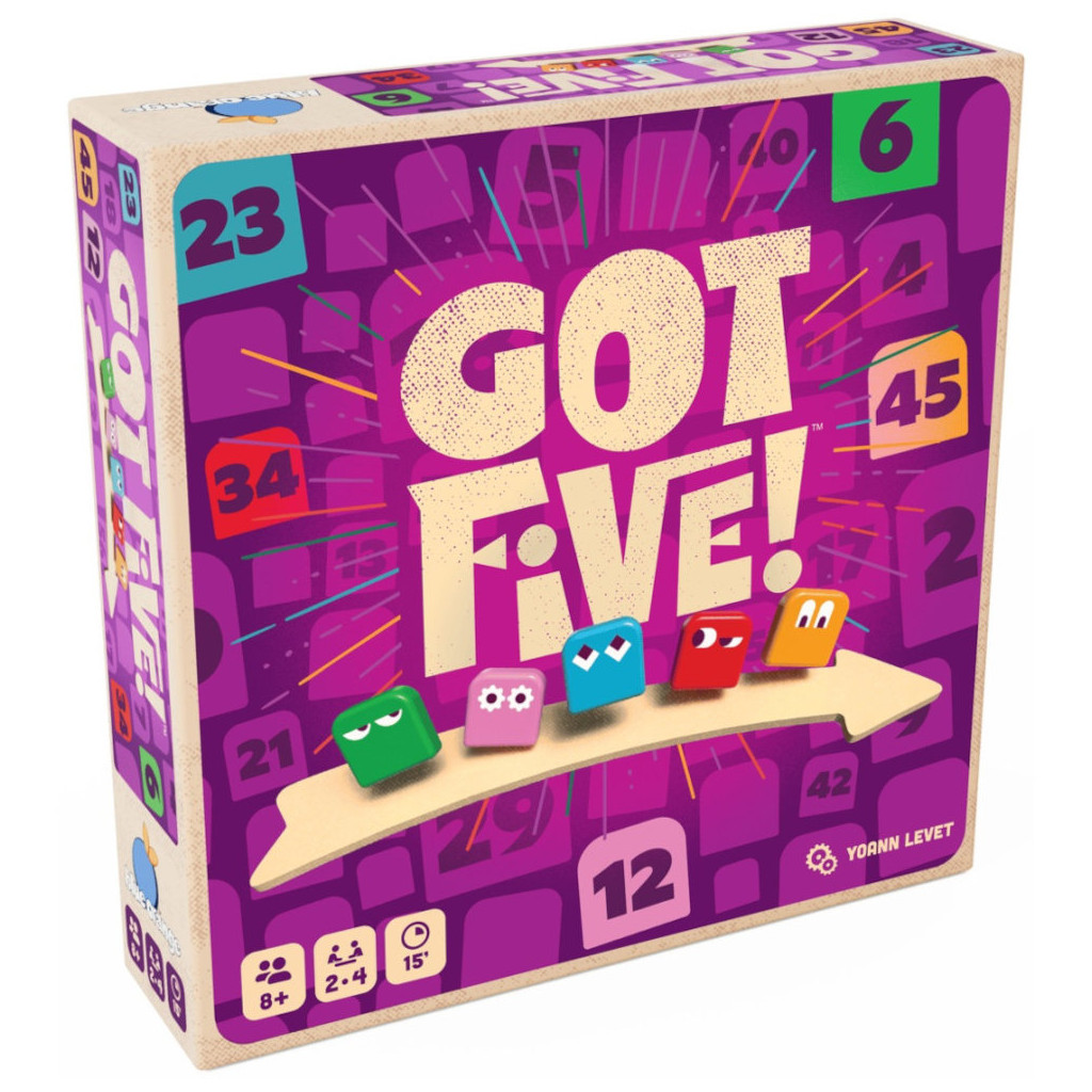 Got Five est un jeu de logique et de déduction créé par Yoann Levet (Turing Machine). Posez les bonnes questions à vos adversaires pour découvrir vos 5 numéros secrets avant tout le monde !À chaque tour, révélez une tuile puis interrogez les autres joueurs : ils devront soit classer votre tuile parmi vos numéros secrets, soit la comparer selon son nombre de points. Analysez les réponses, affinez vos déductions et soyez le premier à identifier vos cinq numéros pour remporter la partie.Un jeu malin, rapide et accessible, parfait pour les amateurs de réflexion et de déduction.