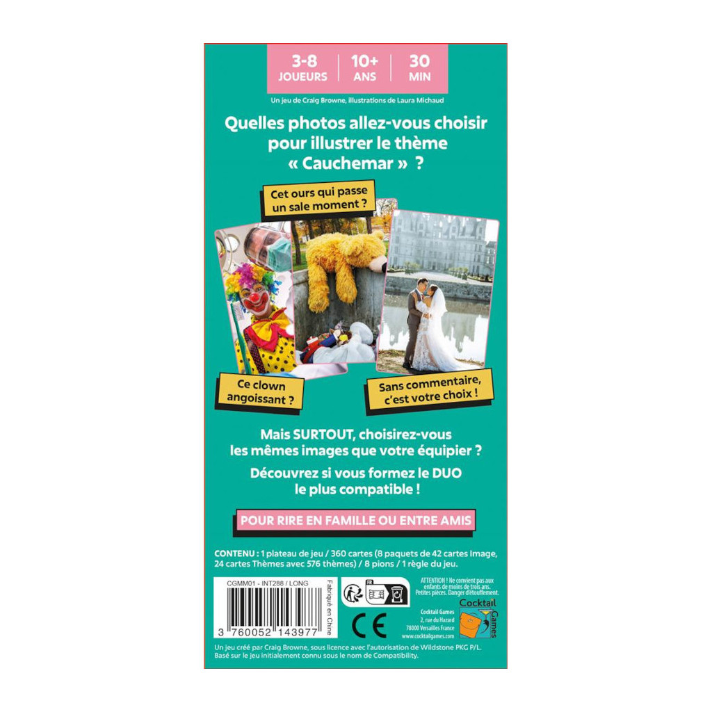 Matchy Matchy est un jeu d’ambiance délirant où votre mission est simple : choisir les mêmes images que votre équipier pour prouver à quel point vous êtes sur la même longueur d’onde ! Chaque équipe joue avec un paquet de 42 cartes Image identiques, illustrant toutes sortes de situations étranges, drôles ou complètement absurdes. Un thème est tiré au hasard, et chacun doit secrètement sélectionner les images les plus pertinentes… ou les plus inattendues.