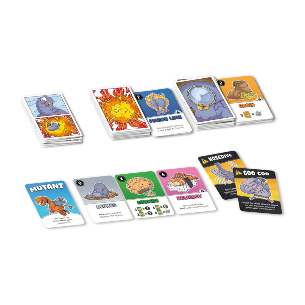 Les pigeons cherchent de la nourriture, et sont prêts à manger n’importe quoi ! Votre but pour gagner est de rassasier vos pigeons en les nourrissant le mieux possible. Mais attention, vos adversaires peuvent les nourrir aussi, en les gavant jusqu’à ce qu’ils explosent!! Ce qui est drôle, c’est que vous pouvez en faire autant…