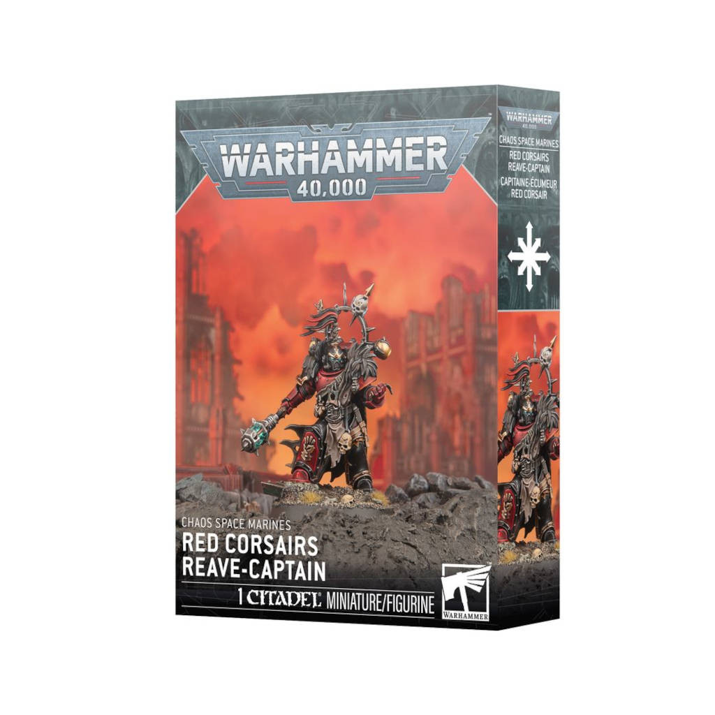 Ce kit en plastique pour Warhammer 40K contient 1 Red Corsairs Reave-Captain, un capitaine pirate sans merci pour les armées de Space Marines du Chaos.