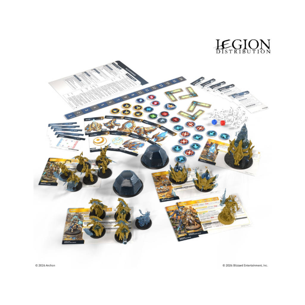 - 6 figurines Zélotes- 4 figurines Adeptes- 2 figurines Sentinelles- 1 figurine Artanis- 1 figurine Pylône- 11 Socles 40 mm- 2 Socles 50 mm- 3 Socles 80 mm- 24 cartes- 1 règle de mesure- 20 dés D6- 30 jetons- 1 manuel d’assemblage- 1 guide de référence des règles