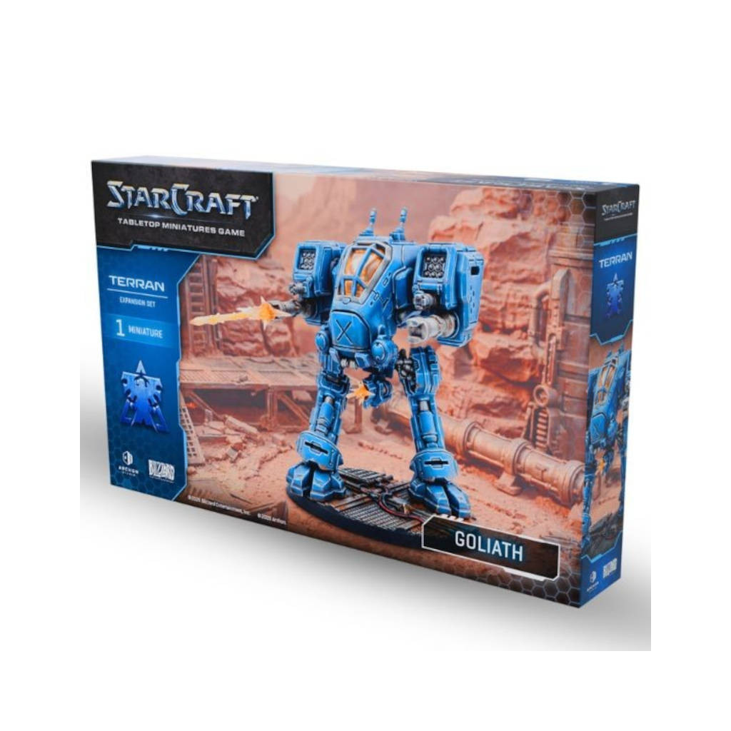 Présent dans la plupart des forces Terran, le Goliath de StarCraft, le jeu de figurines, est un puissant marcheur de combat piloté par un seul soldat. Conçu pour offrir une réponse polyvalente aux menaces du champ de bataille, il combine puissance de feu et précision grâce à son système d’armes lourdes assisté par ordinateur.