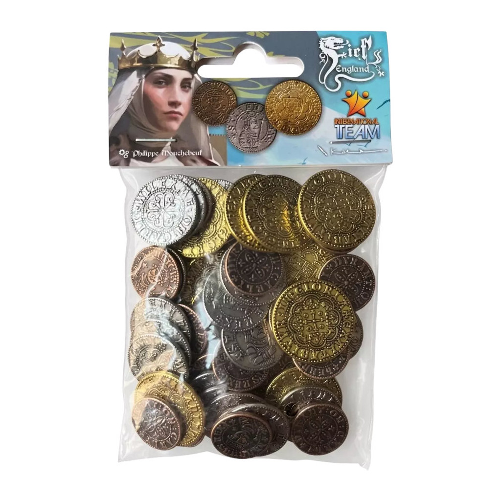 Lot de 50 pièces de monnaie en métal, répliques de monnaies anglaises de 1100 à 1300, pour remplacer les pièces en carton du jeu Fief England.