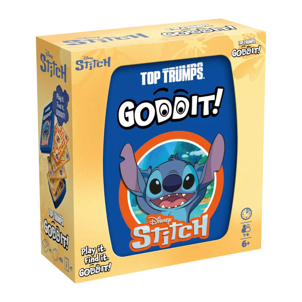 Grâce aux illustrations issues du célèbre dessin animé Lilo et Stitch et à sa boîte métallique pratique et portable, GODDIT ! est le jeu idéal pour s'amuser en famille et entre amis.