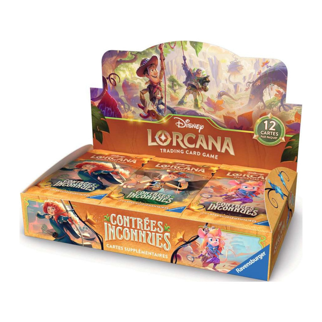 Lorcana S12 - 24 Boosters de l'édition Contrées Inconnues. Retrouvez le monde magique de Disney avec ce display contenant 24 boosters de Lorcana !
