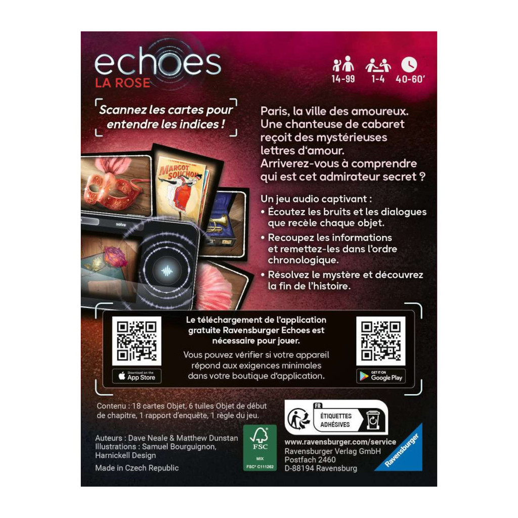 Le téléchargement de l'application gratuite Ravensburger Echoes est nécessaire pour jouer.